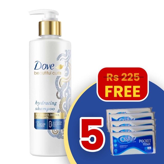 Dove Beautiful Curls Shampoo 380ml + FREE 5 Mint Pocket Tissue
