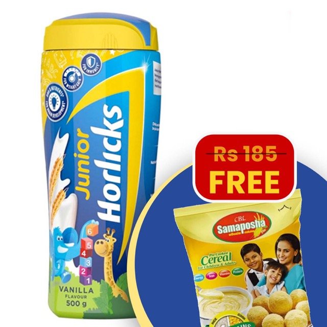 Junior Horlicks Vanilla Flavour 500g + FREE Samaposha 200g
