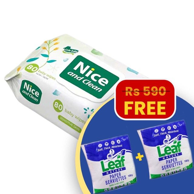 Nice & Clean Baby Wipes (80 Pieces) + FREE 2 Leaf Nature Paper Serviettes 100g