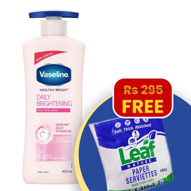 Vaseline Healthy Bright Daily Brightening 400ml + FREE Leaf Nature Paper Serviettes 100g